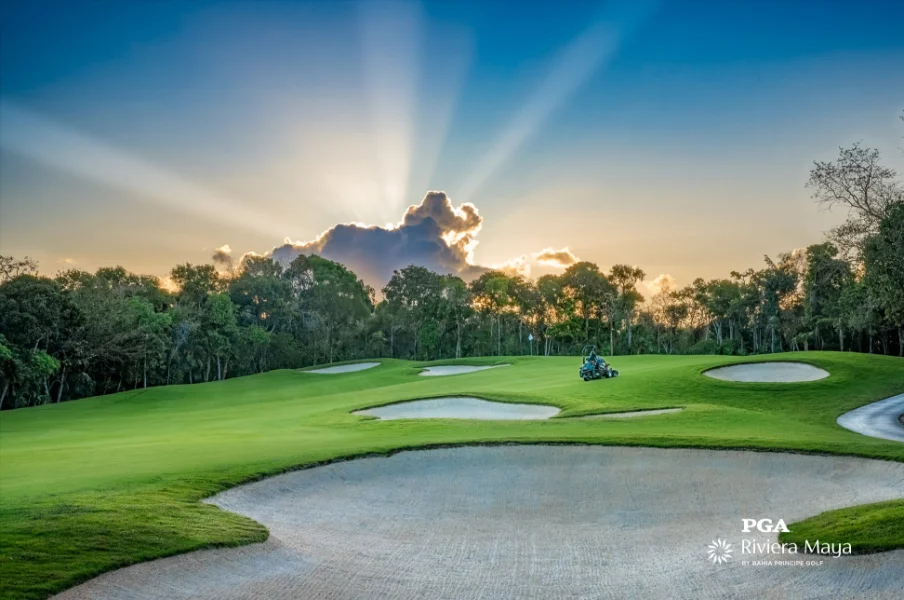 Nestled in the jungle of the Mexican Caribbean, PGA Riviera Maya is a world-class golf course that blends cutting-edge design with spectacular natural scenery. Each hole offers a different challenge, surrounded by lush vegetation, cenotes, and wildlife, providing an unforgettable experience for golfers of all levels.