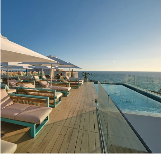 It features an infinity pool, rooftop terrace, a restaurant serving local cuisine, a bar, and spaces designed for couples to relax and enjoy a warm and sophisticated atmosphere.