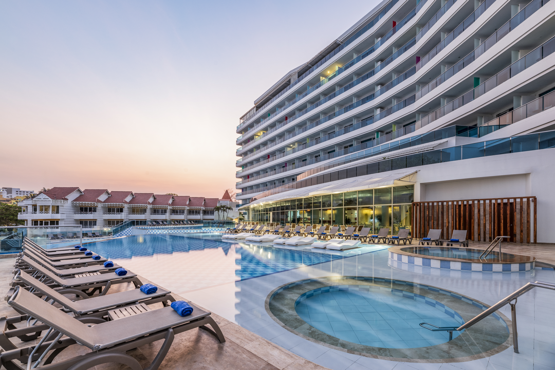 Resort frente al Mar Caribe en Cartagena de Indias, con acceso directo a la playa, múltiples piscinas, restaurantes y actividades para toda la familia. Ofrece espacios modernos y confortables tanto para descanso como para eventos, a pocos minutos del aeropuerto y del centro histórico