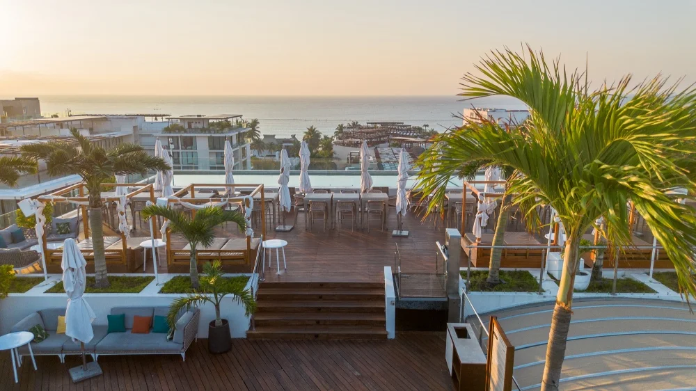 Perfecto para relajarte durante el día o disfrutar del atardecer con estilo, en un ambiente moderno y vibrante a solo pasos de la 5ta Avenida.